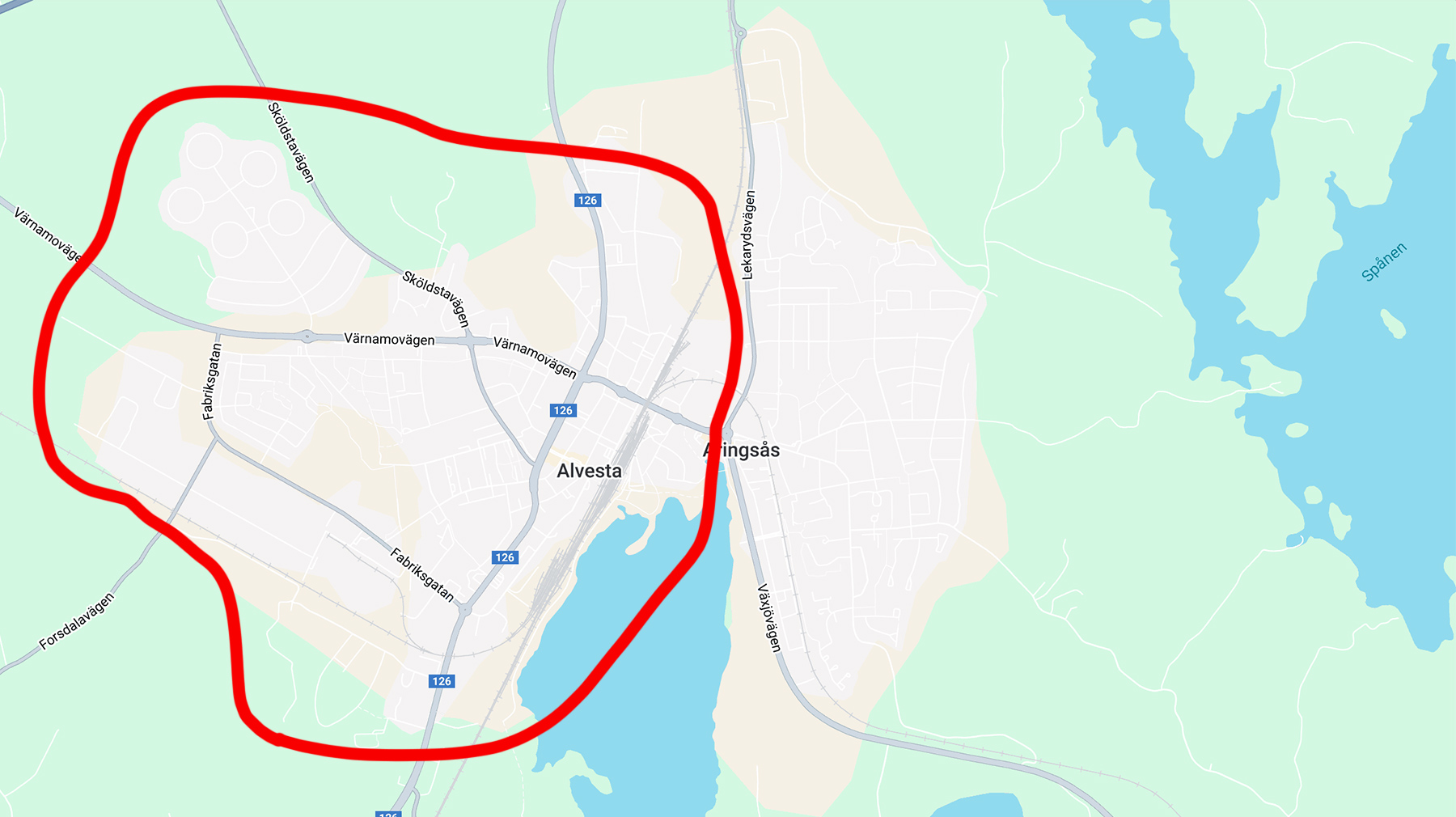 Har du fjärrvärme, högre vattenförbrukning än normalt och bor inom det markerade området på kartan? Då kan du beröras av ett inläckage i västra Alvesta.